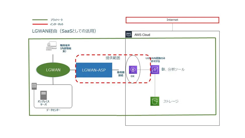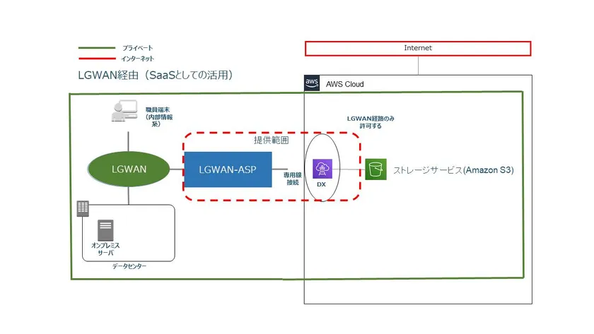 ●本サービスは、LGWANを通してAmazon S3への専用線接続を提供する。
