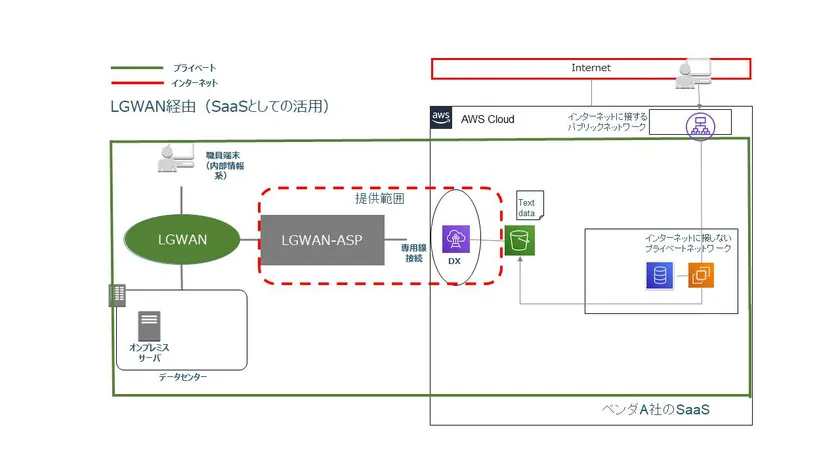 ●ベンダーA社はテキストファイルへのアクセスをLGWAN経路にアクセス限定した形で提供する。