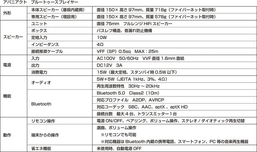 製品概要 アバニアクト ブルートゥースプレイヤー