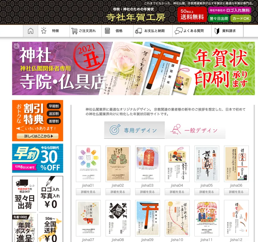 創業32年のデザイン会社、株式会社アイデア工房(所在地:大阪市中央区、代表取締役:田中 太陽)は、専門年賀状受注印刷サイト「寺社年賀工房」を開設しました。自社調べでは、お寺と神社に特化した年賀状受注サイトは日本初であり、今まで完全オーダーメイドでしか作れなかったものが手軽に選んで注文できるようになりました。
