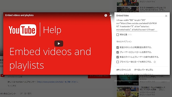 YouTube動画はただ埋め込みができるだけではなく、様々なオプションが用意されています。以下は埋め込みコード選択の際に出る項目やチェックボックスです。(2018年10月現在)