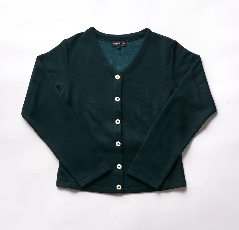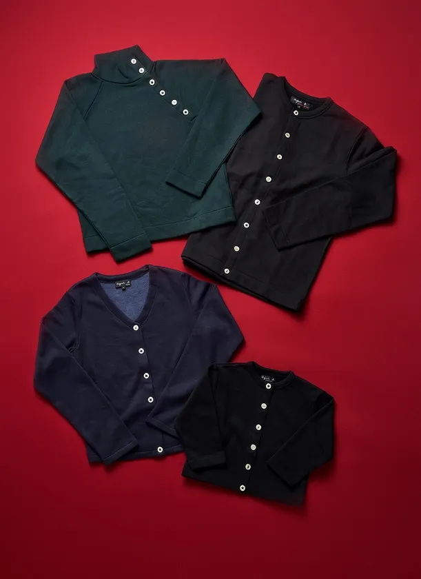 そしてコレクションラインからはアニエスベーの代名詞ともいえる「カーディガンプレッション」に、“b.”や“★”などのアイコニックなモチーフのデザインボタンをあしらったスペシャルバージョンが登場。