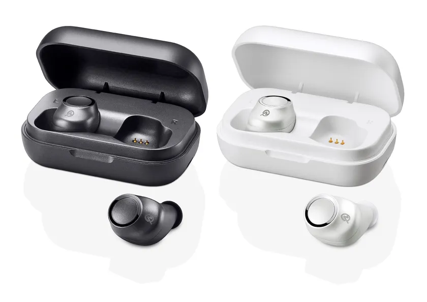 イヤホン片方3.9gの超軽量設計による“付け感ゼロ”の装着感をはじめ、Qualcomm社の高性能SoCの採用、新開発φ7.2mmダイナミックドライバーによるバランスの良いクリアなサウンド、aptXコーデックへの対応、連続約7時間※、充電ケースを併用すれば最大約24.5時間使用できるバッテリーの搭載、IPX5相当の防水性能、タッチセンサーによる軽快な操作性など、完全ワイヤレスイヤホンを快適に使用するために必要な機能を網羅したニューモデル。