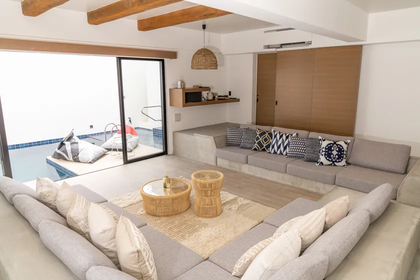 プライベートプールと一体感のあるゆったりしたリビングで極上の居心地をご堪能ください。
