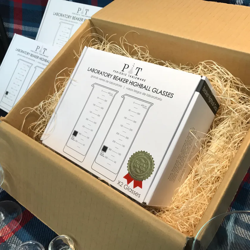Periodic Tableware社は2013年にビーカーワイングラスをデザインして、クラウドファンディングで資金を集めて事業開始したアメリカのメーカーです。