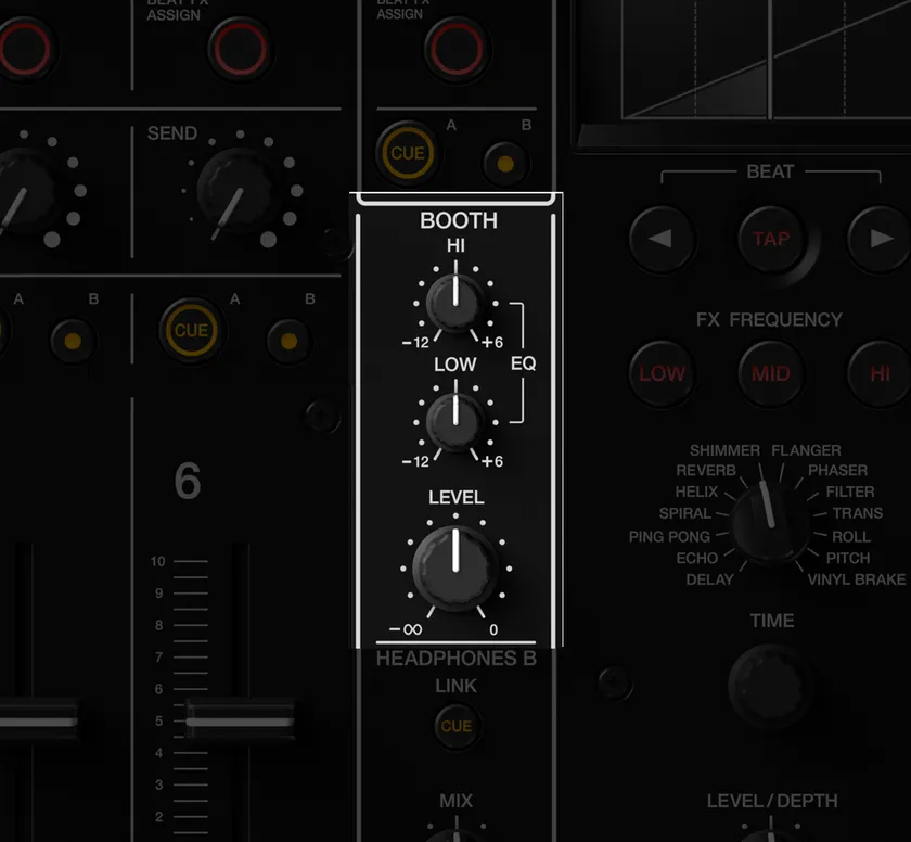 2BandのBooth EQを搭載しています。フロアとDJブース内の音響バランスをより近づけるなどの使い方により、快適なモニタリング環境を構築できます。