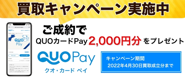 キャンペーン内容:買取金額が5,000円以上の場合に限りQUOカードPay2,000円分をプレゼント