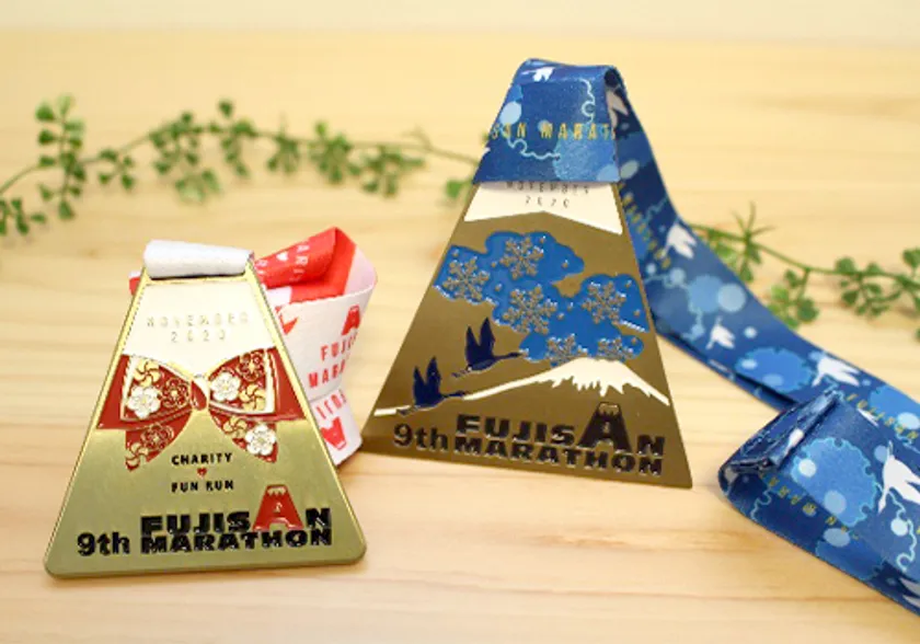 (4)参加者全員にBEAMSデザインの『富士山マラソンオリジナルTシャツ』、完走者全員に『完走メダル』を贈呈