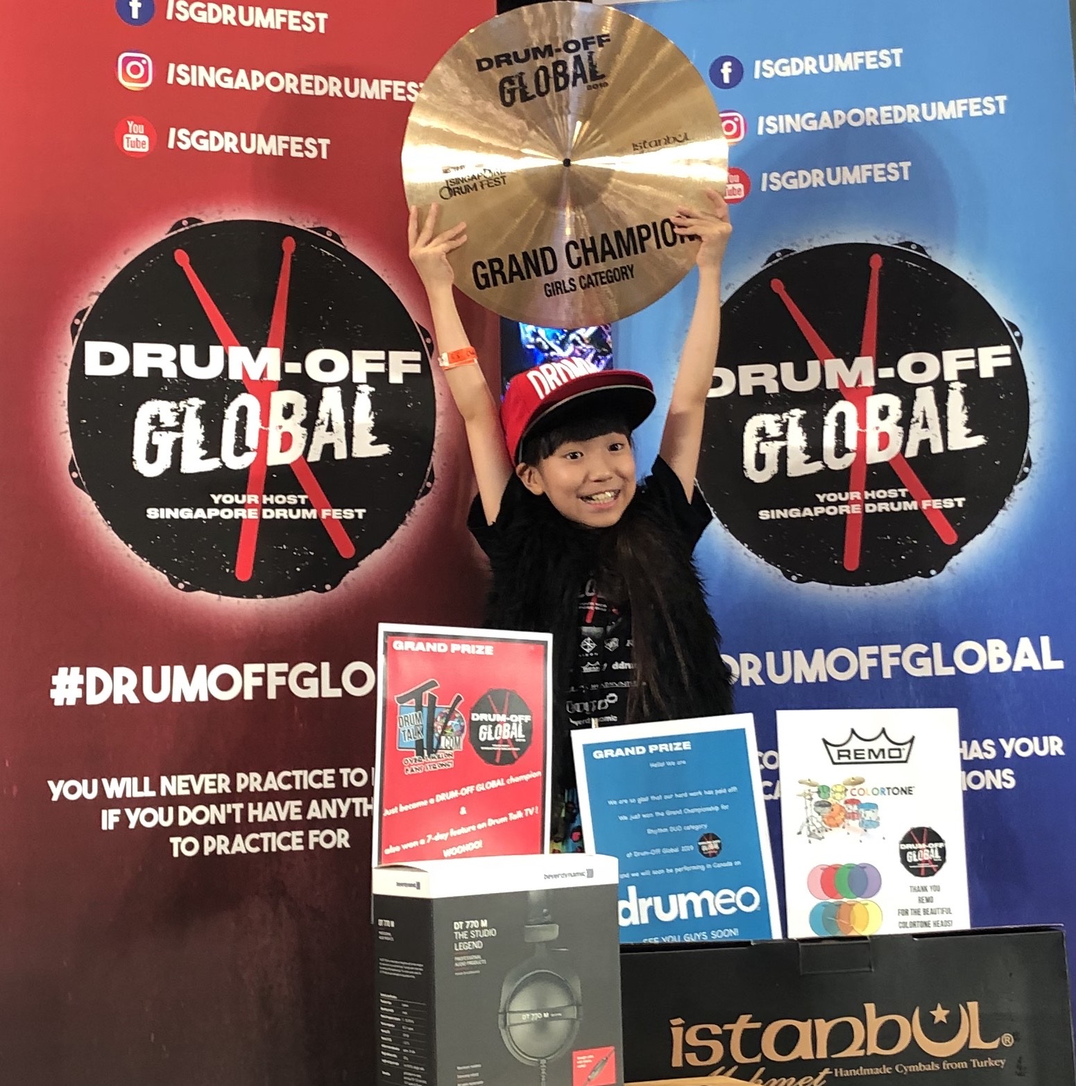 10歳(小学校4年生)のときに世界的ドラムコンテストDRUM-OFF GLOBAL 2019 ガールズ部門(35歳以下)にてカテゴリー最年少出場で優勝