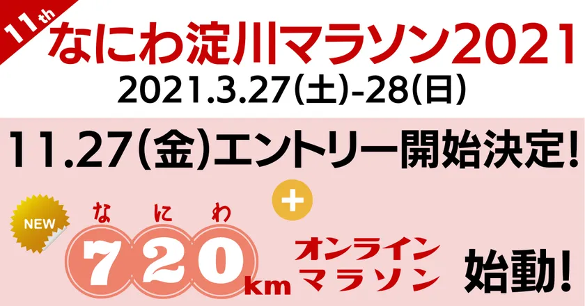 春の淀川を代表するマラソン大会「なにわ淀川マラソン2021」 2021年3月27日(土)-28日(日)に開催決定! 日本最長?“720(なにわ)kmオンラインマラソン”を同時開催
