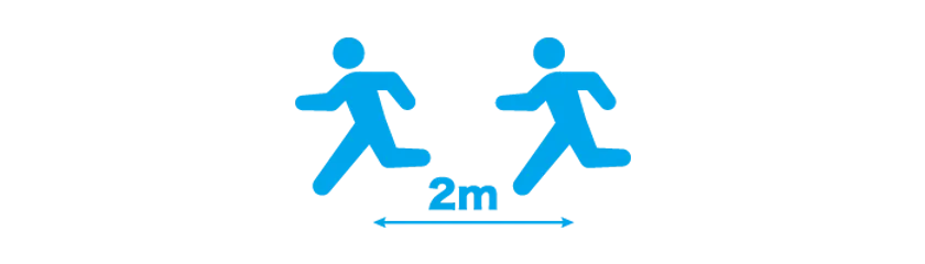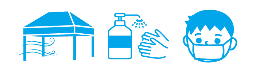・参加者が距離をおいて並べる目印の設置や更衣室の換気等、イベント会場内で三密を避ける対策を実施します。