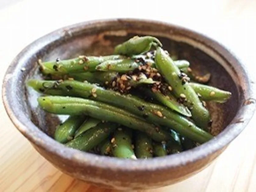 旬な食材を使った前菜を日替わりでご用意させていただきます。(写真はインゲンのごま和え)