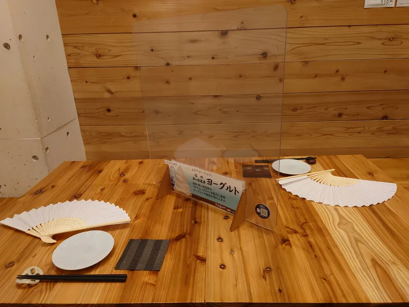 パーテーションと扇子をご用意してお待ちしています