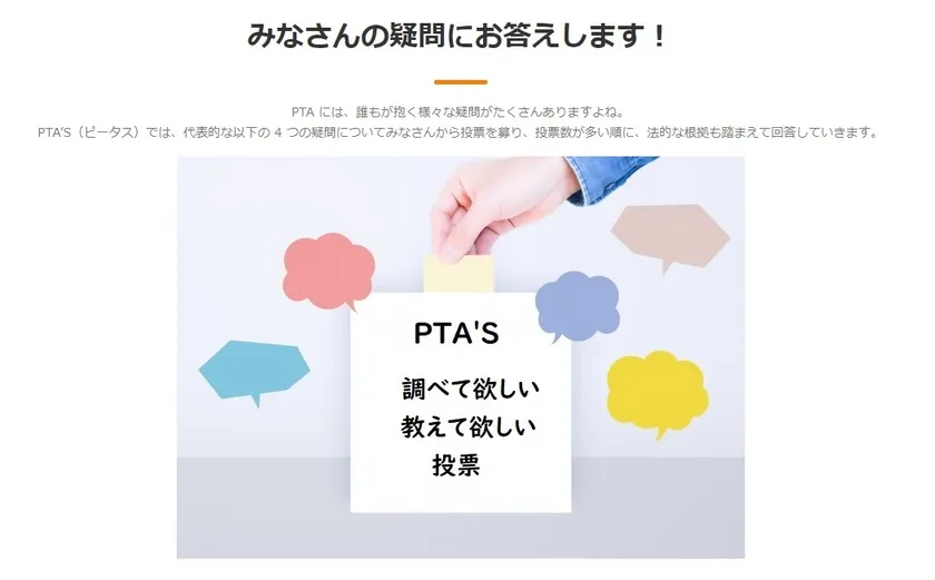 「PTA'S(ピータス)」は、“できるだけ多くのPTAをたすける、PTAのためのサイト”です。