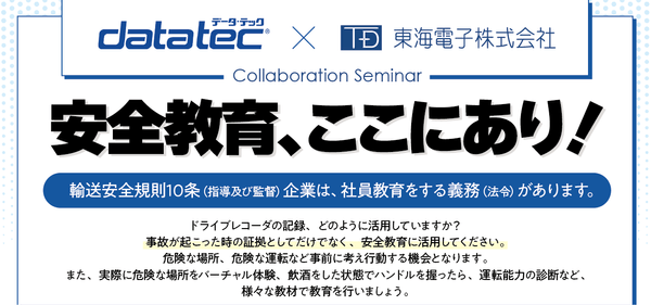 ■詳細はこちらから:【株式会社データ・テック×東海電子株式会社合同ウェビナー】安全教育、ここにあり!