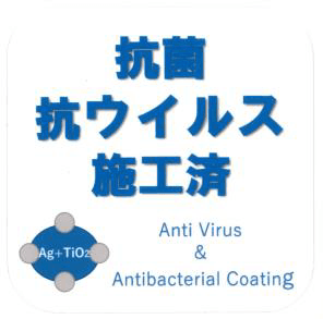 施工する抗ウイルス・抗菌コーティング加工は、抗菌製品技術協議会(SIAA)の抗菌加工認定を取得した薬剤を使用しており、施した箇所には施工済みのステッカーを掲示します。今後も様々な感染予防対策を実施・推進してまいります。