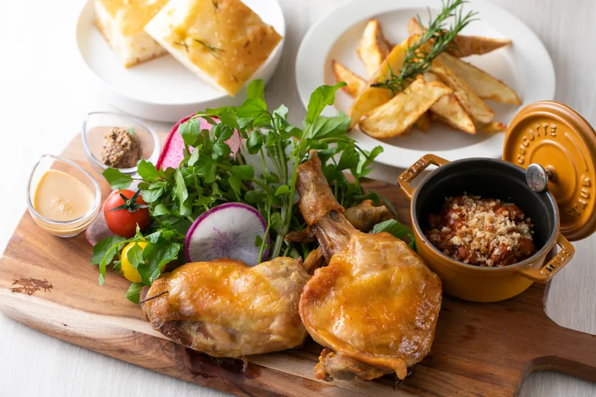 ハーブでマリネした鶏肉をじっくりオイル煮して、カリカリに焼き上げたフランス伝統料理。