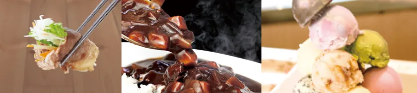 サイドメニュー14種、バーコーナーにある黒カレー、ライス、スープ、アイスがすべて食べ放題です。ファンの多い黒カレーに加え、今回は『昼得ランチ』限定メニューの「“焼肉屋さんの”メンチカツ」も食べ放題です。