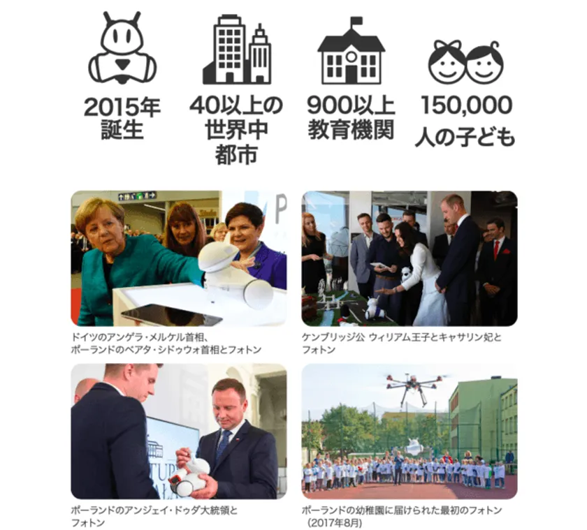 世界中の教育機関に導入済みのグローバルなロボットとして、既にフォトンは900以上の教育機関に導入されており、15万人以上の子供達が体験している教材となっています。