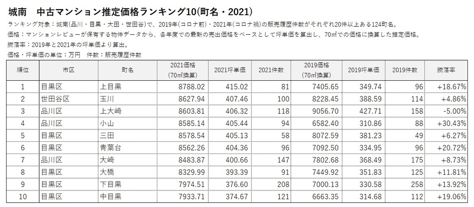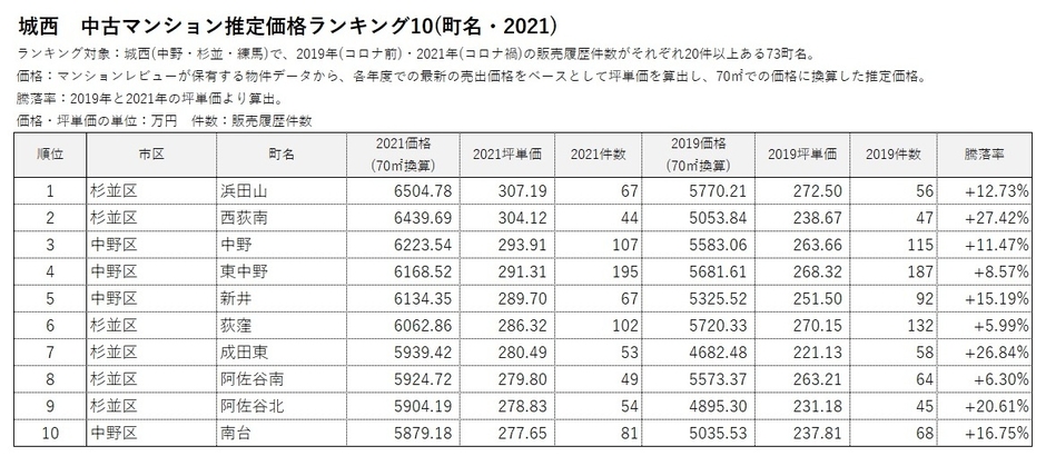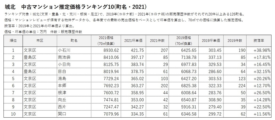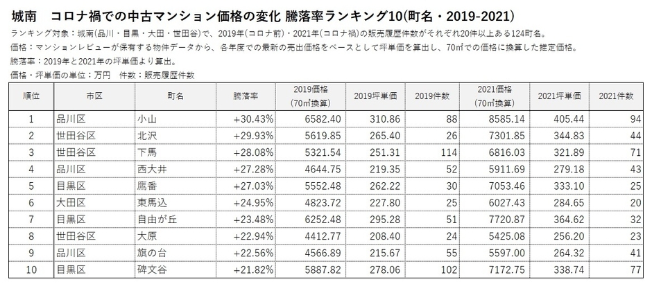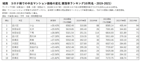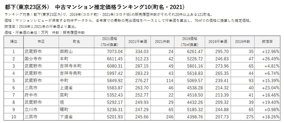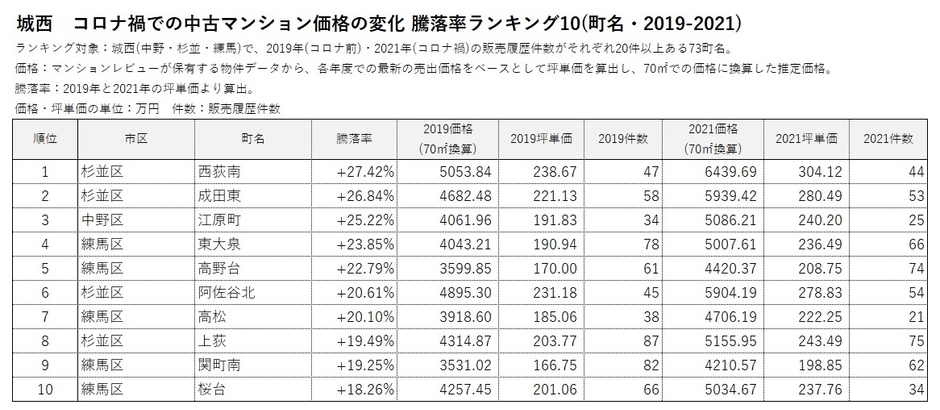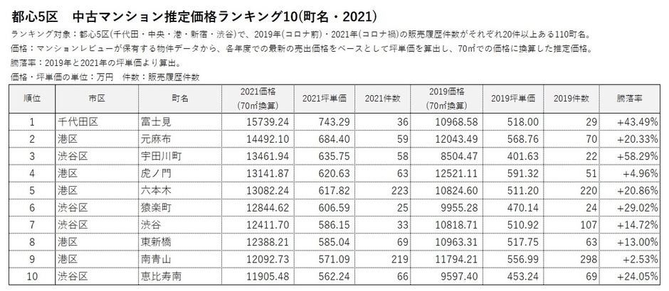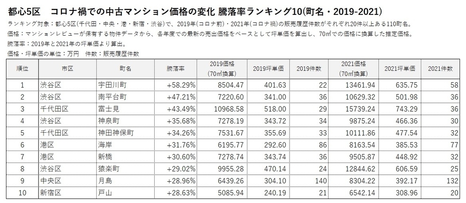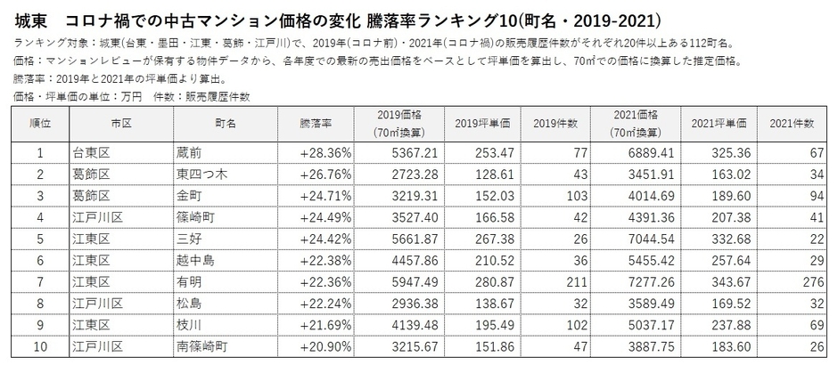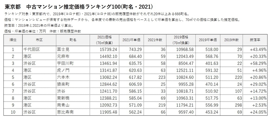 *2 2019年(コロナ前)と2021年(コロナ禍)の販売履歴がそれぞれ20件以上ある666町名を対象にランキングを作成。