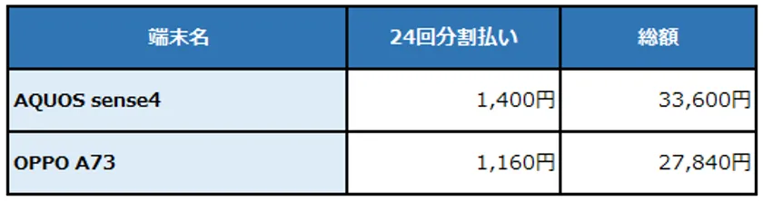 ※端末はすべて分割払い(24回)となります(支払期間25カ月・実質年率0%)。
