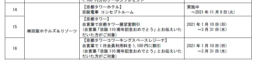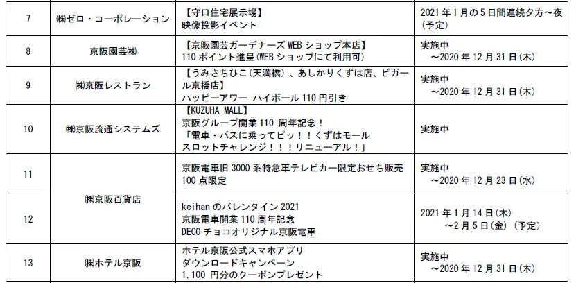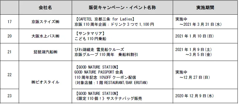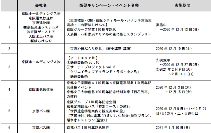 2.京阪グループ「開業110周年記念イベント」一覧 ※実施中のものを含む