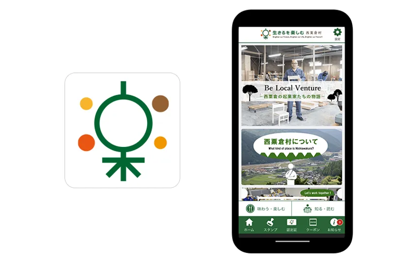 本アプリは、村の関係人口(西粟倉村に観光・仕事・帰省等で訪れた方々、西粟倉村を応援したいという方々)と、村との多様なコミュニケーション・関係強化を支援するアプリです。“アプリ村民 認定証”を中心に、観光情報・求人情報・村のイベントカレンダーなど、村の今を伝える多様な情報が充実しています。