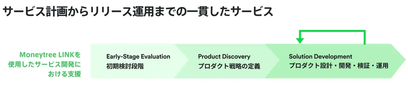 「プロフェッショナルサービス」は、金融サービス提供事業者との協働のもと本サービスの提供により新たな顧客体験を創出していくものです。当社が保有する知見、各種リソースを基礎として構築されたサービスかつMoneytree LINKの導入をベースとし、金融サービス提供事業者が取り組まれている新たなサービス計画の策定において、設計の初期段階からデザイン思考とアジャイル開発プロセスを提供することで、顧客企業と共にプロセスの変革に向け協働し、サービスのリリース運用を加速させていきます。また、本サービスは当社のプラットフォーム事業およびアプリ事業において蓄積してきた金融データと消費者ニーズへの深い考察と分析力をもつ専門チームが担当します。
