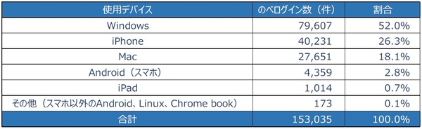 使用しているデバイスは以下の通りで、Windowsが半数を占めました。