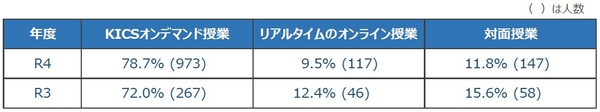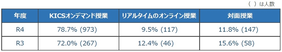 コロナ禍により、メディア授業が一般的に導入されて3年目を迎えた今期においても、「KICSオンデマンド」へのニーズが、「リアルタイムのオンライン授業」や、「対面授業」よりも高いという事実は、単なる珍しさといった一過性のものでなく、学生のニーズに合った実用性のある受講形態であることを示しています。