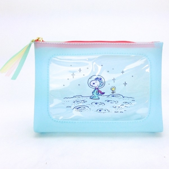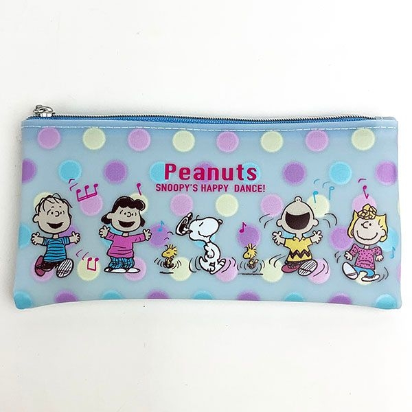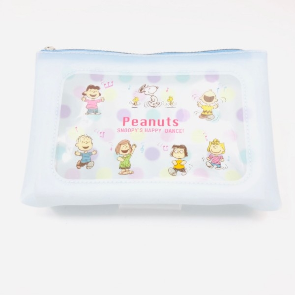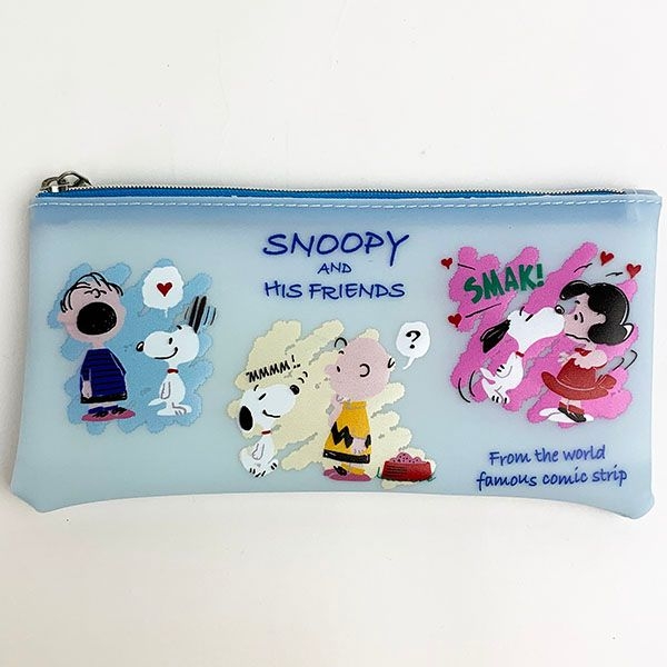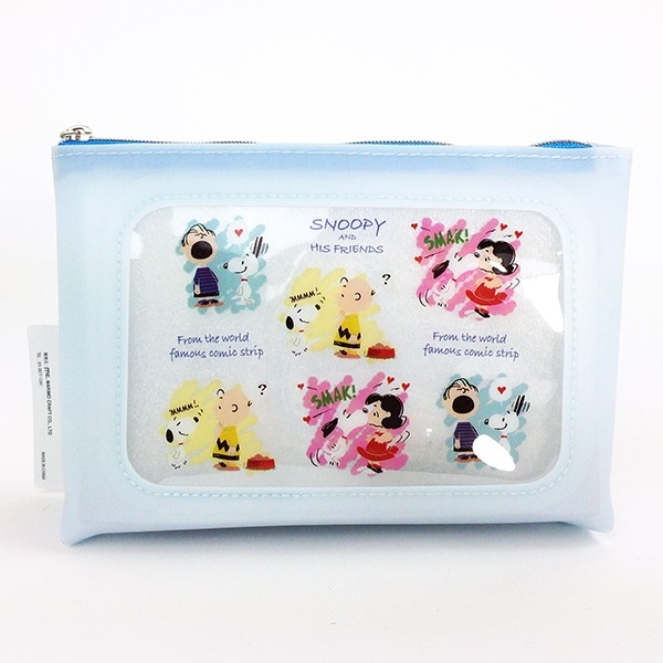 スヌーピーとチャーリーブラウンやルーシーたちのラブラブなデザインの、シリコンポーチです。ぷにぷにした手触りがクセになりそう♪パステルブルーの背景も綺麗ですね。カラフルで立体感があるようにも見えるタッチ。フラットなタイプなので、バッグの中でもスッキリです♪