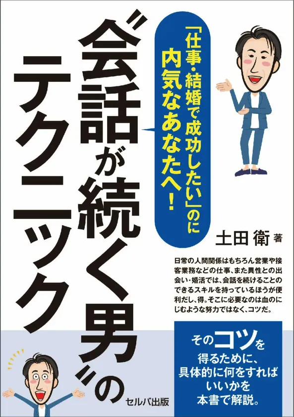 コミュニケーションや会話力向上のコンサルタントを行う有限会社プロス(所在地:新潟県三条市興野)の代表取締役社長 土田 衛は、2020年12月8日(火)に著書『“会話が続く男”のテクニック』(セルバ出版・刊)を出版します。