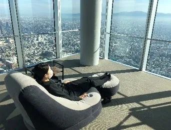 「くつろぎ快適観賞コース」では、60階「天上回廊」の屋内でゆったりとソファーに腰掛けておくつろぎいただき、お正月ならではの「お雑煮」や「熱燗」をその場でお召し上がりいただきながら初日の出をご観賞いただけます。
