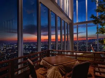 「プレミアムヘリポート観賞コース」では、最頂上部のヘリポートで初日の出を観賞できるほか、観賞後は58階「天空庭園」の屋外空間に設置された「こたつ席」で「おせち料理」や「お雑煮」、「熱燗」をお楽しみいただき、お正月気分を存分にご堪能いただけます。