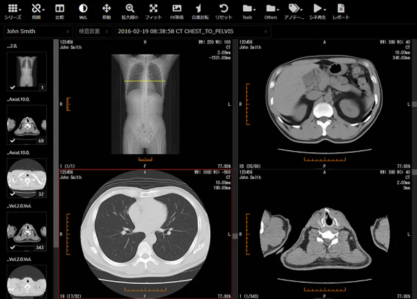 本製品は、CRやCT、MRIなどの検査装置から発生するデジタルな医用画像データを保管、管理し、それらの画像をWebブラウザで参照することができるソフトウェアです。2018年の販売開始以来、Webブラウザベースの高速画像ビューアを搭載し、リーズナブルなコストで導入できることから、高い評価を得ています。