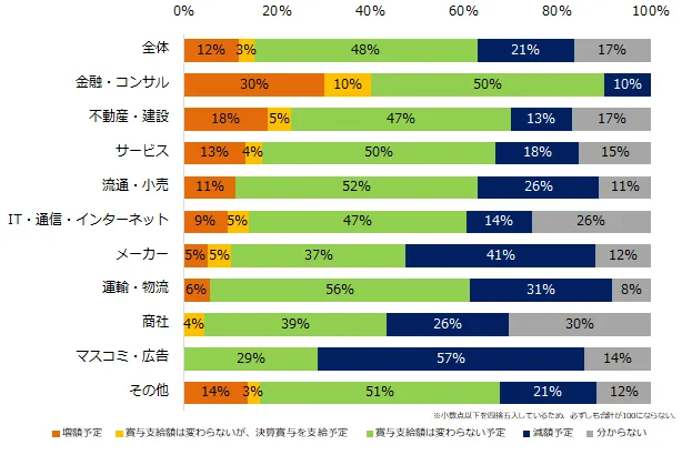★6割の企業が冬季賞与を支給予定。支給率が低い業界は「マスコミ・広告」「サービス」「IT・インターネット」。