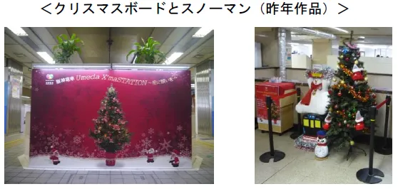 更に、大阪デザイナー専門学校の学生の皆さまが製作した「スノーマン」を設置し、自動改札機にはかわいい「ポップ」を掲出します。