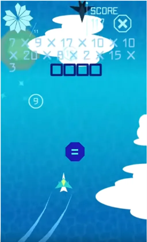 宙に浮遊する数字と「+」「×」「=」などの演算記号を獲得して得点化するフライトアクションゲームです。