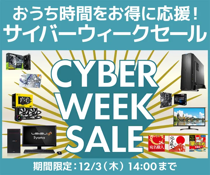 パソコン工房・グッドウィルを運営する株式会社ユニットコム(代表取締役:端田 泰三、本社:大阪市浪速区)は、パソコン工房Webサイトにて、おうち時間をお得に応援させていただく『サイバーウィークセール』を2020年12月3日(木)14:00までの期間限定で開催いたします。