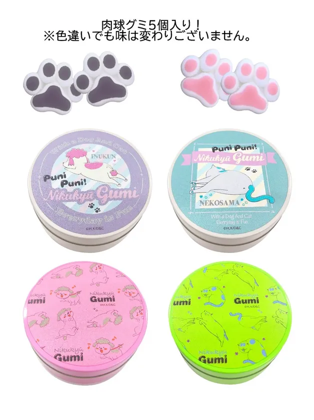 ※右上から時計回りに 肉球グミ 猫さま(寝そべり)/肉球グミ 猫さま(総柄)/肉球グミ 犬さま(総柄)/肉球グミ 犬さま(寝そべり)