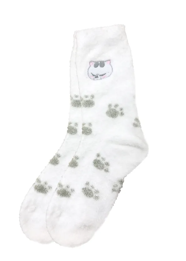 犬くん、猫さまの1ポイント刺繍と足跡がデザインされたふわふわ素材のルームソックスです。