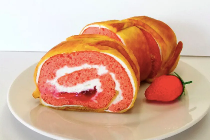 いちごのジュレと濃厚ミルククリームをたっぷりと使ったしっとりシューロールケーキ。