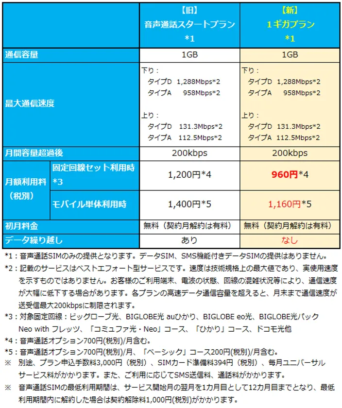 BIGLOBEは、高速モバイル通信サービス「BIGLOBEモバイル」において、新たに月額960円(税別)からの音声通話・SMS・データ通信対応プラン「1ギガプラン」を本日12月1日より追加します。