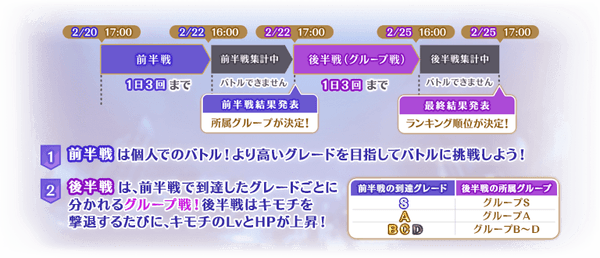 イベントの開催期間は、前半戦と後半戦の2部で構成されます。