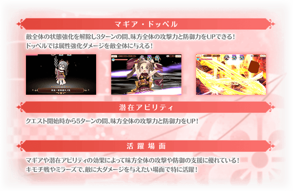 本ガチャでは、有償マギアストーン150個で対象の火属性★4魔法少女のうち1体が確定で登場いたします。