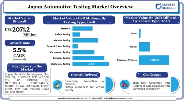 日本の自動車試験市場は、2021年から2028年の間に5.5%のCAGRで成長する。電気自動車の需要が高まり、市場成長のための多くの機会を創出