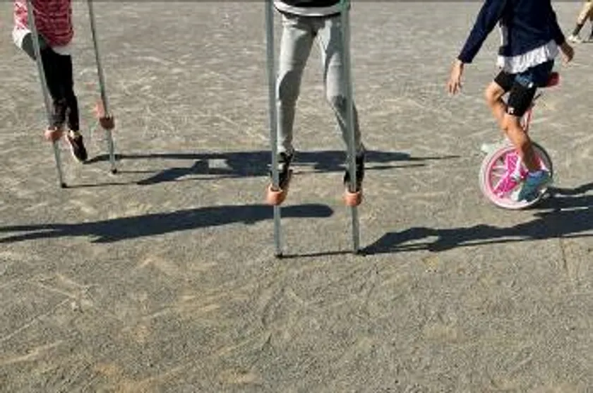 贈呈できた一輪車と竹馬2