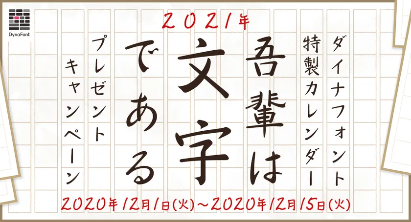 また、本取り組みに御参加いただいた方の中から抽選で50名様にダイナフォント2021年カレンダー「吾輩は文字である」をプレゼントさせていただきます。