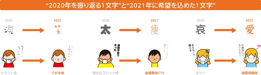 <“2020年を振り返る1文字”と“2021年に希望を込めた1文字”>