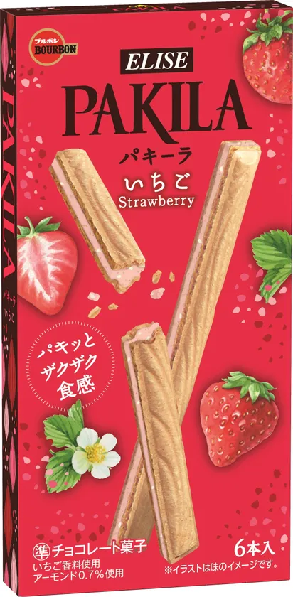ブルボン、ザクザク食感といちごチョコレートの組み合わせ 「パキーラいちご」を12月15日(火)に期間限定発売!